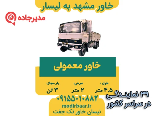 خاور مشهد به لیسار حمل بار با خاور مشهد به لیسار؛ مسیری میان کویر و جنگل با باربری معتبر مدیرجاده در دنیای حملونقل جادهای، یکی از مسیرهای پرچالش اما زیبای کشور، مسیر خاور مشهد به لیسار است. مسیری که از قلب خراسان رضوی تا سواحل شمالی گیلان امتداد دارد. در این مسیر طولانی، باربریهای معتبر […]